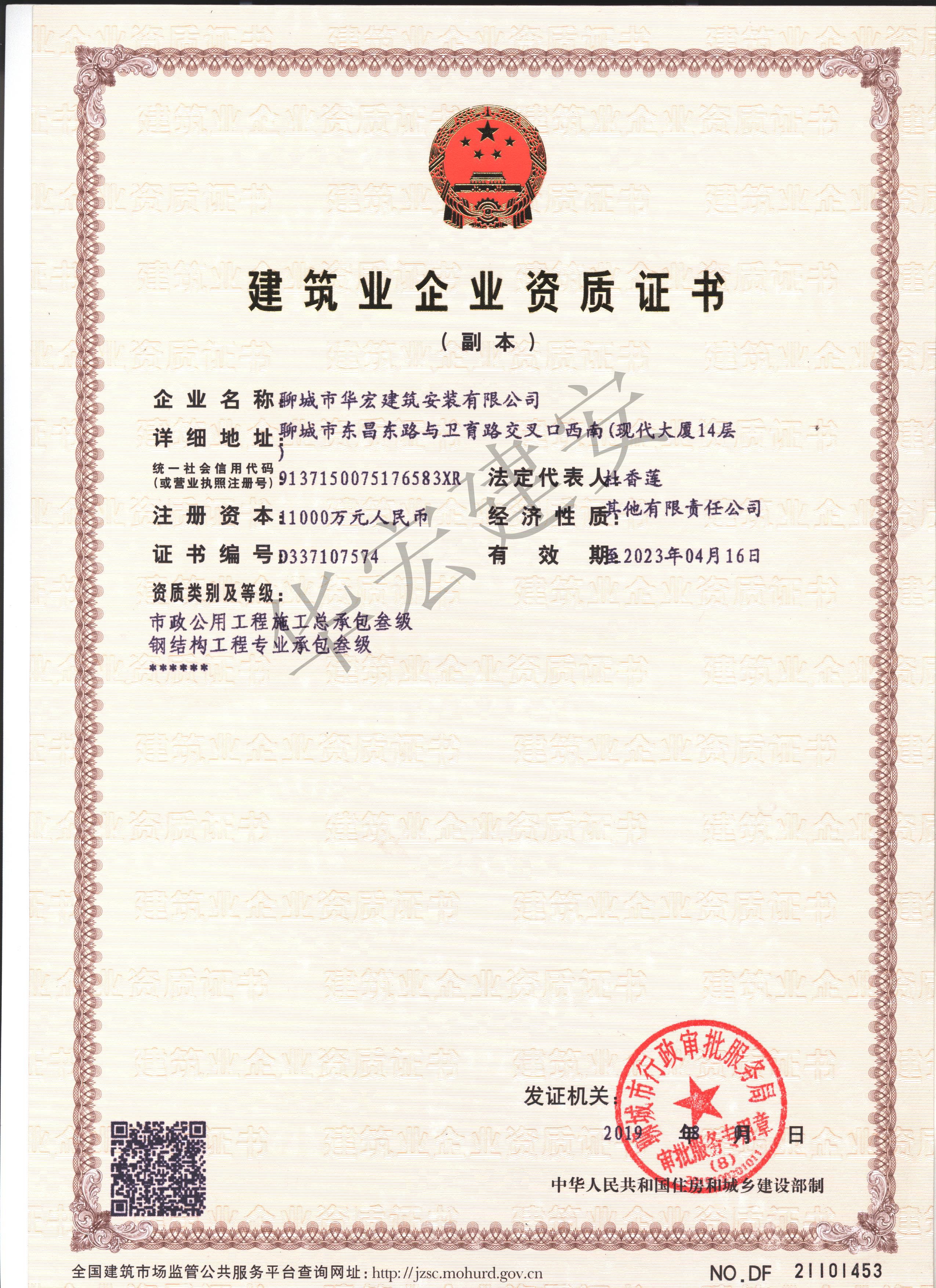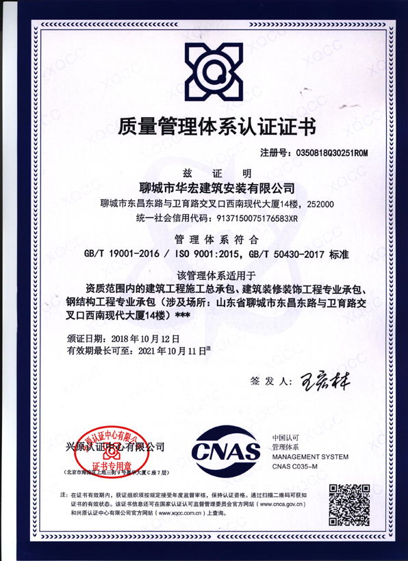 聊城市華宏建筑安裝有限公司成立于2002年5月,公司自2002年成立以來,不斷發(fā)揚 “敬業修身 打造精品 開拓創新 弄潮勇進”的創業精神,始終遵循“以質量求生存、靠精品創品牌、憑信譽贏市場”的宗旨,認真奉行“科學 高效 一流”的質量方針